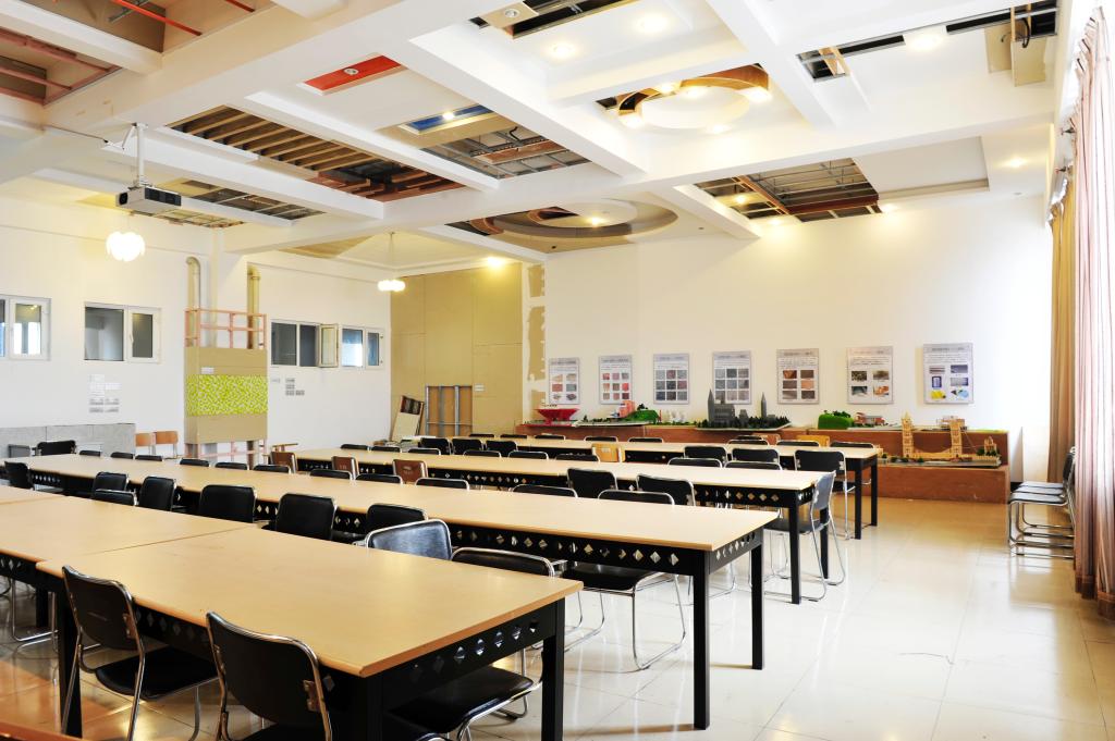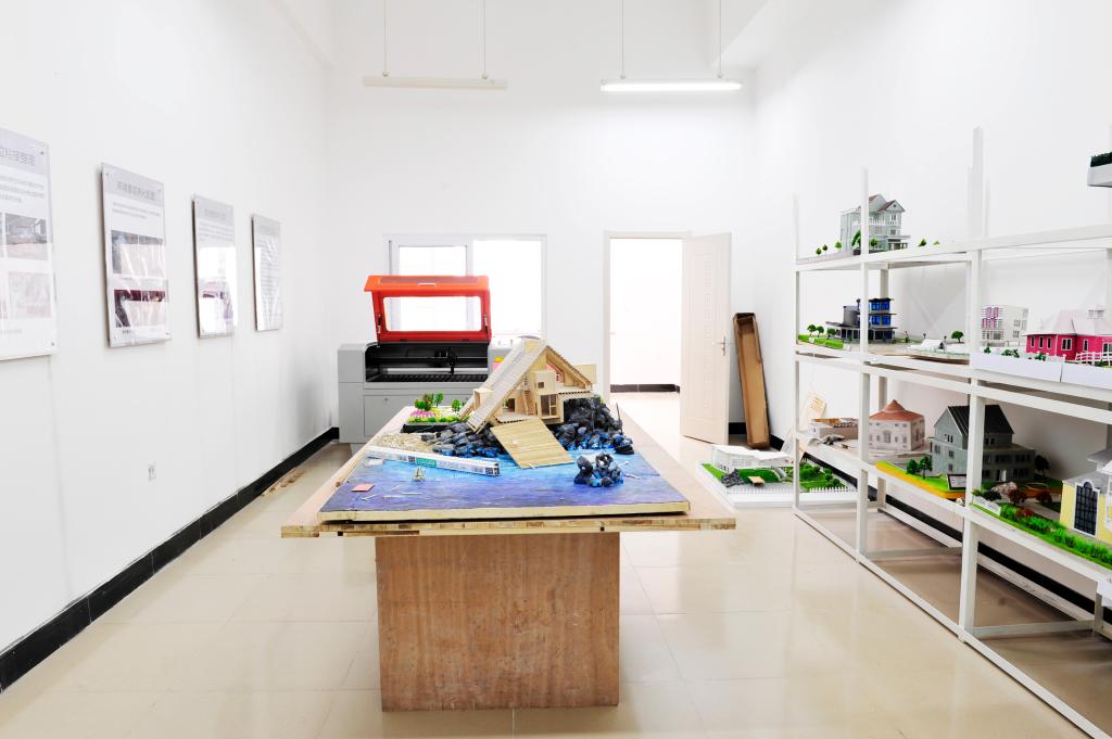 环境艺术模型实验室主要分为两间教室,其中一个教室以室内设计常用的棚、墙面造型展示为主体功能,重点展示常用吊棚材料、施工工艺,墙面在重点部位展示了常用装饰材料和构造关系。考虑到室内兼具教学功能,地面没有过多的占用。为满足教学需要,教室还配置了投影机和固定投影幕。另一间教室配有激光雕刻机及配套电脑等设施,主要用于建筑模型设计与制作。激光雕刻机教室由我系专职教师管理,有严格的管理规章制度。环境艺术实验室为环境设计专业教学提供了重要的技术支持,对于提高学生的实践技能和学习兴趣有着重要的作用和意义。