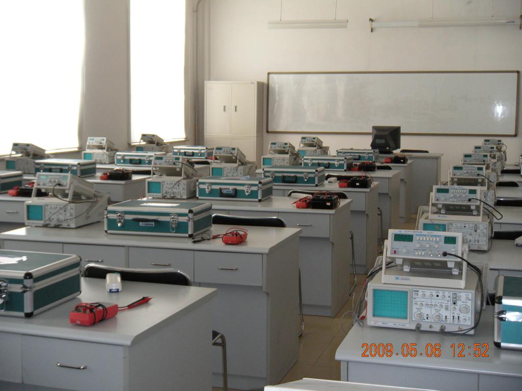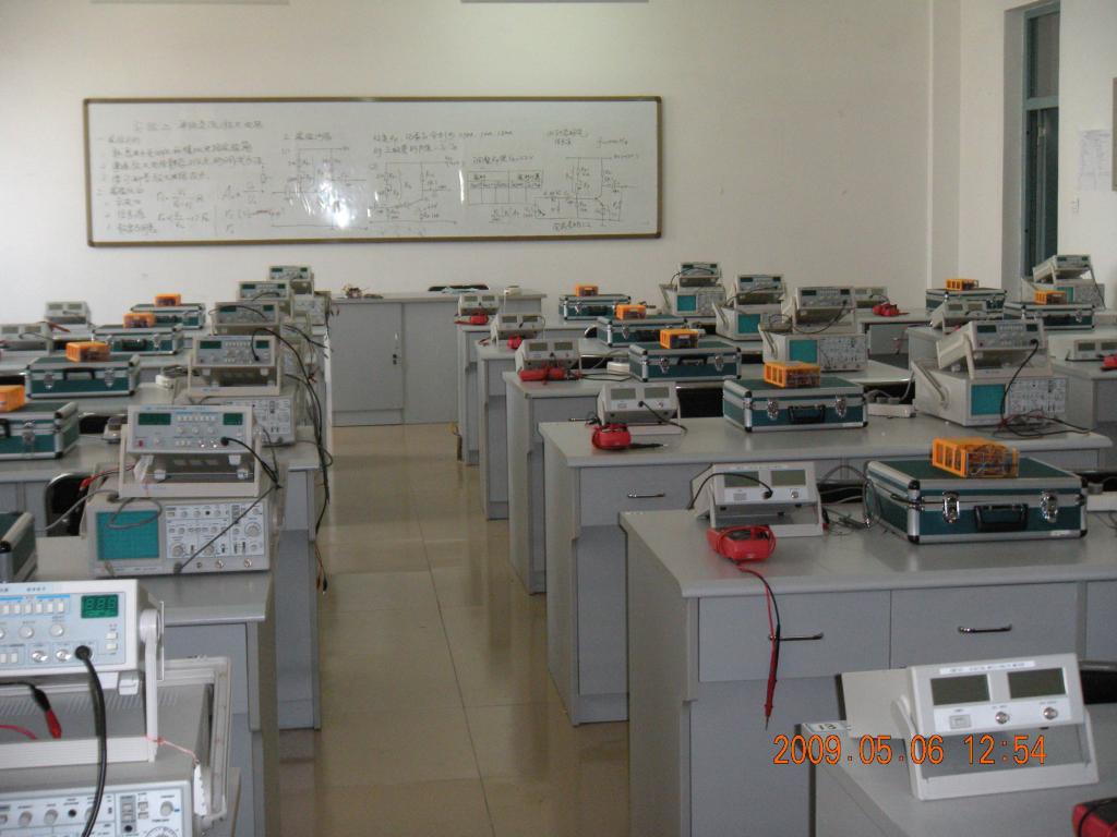 电子技术实验室是专业基础实验室,有配套实验仪器、实验设备20套,可同时供40人上课。