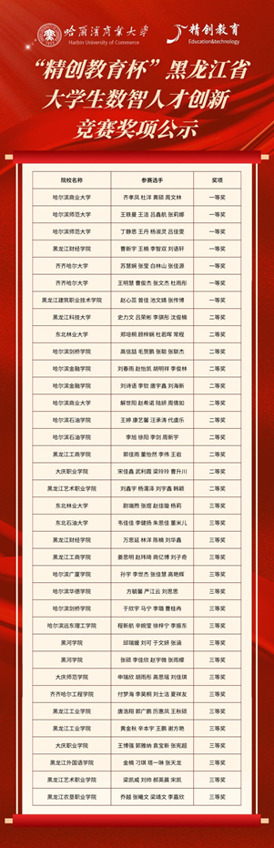 2023年10月28日,由黑龙江省普通高等学校创新创业教育指导委员会主办、哈尔滨商业大学承办的“精创教育杯”黑龙江省大学生数智人才创新竞赛圆满落幕。本次大赛共有来自黑龙江省各地区高校的60余支队伍报名参赛。管理学院人力资源管理专业老师赵一博、刘兵兵、宋嘉悦指导2支参赛队伍,参赛学生曹新宇、王楠、李智双、刘语轩、万思延、林洋、陈楠、刘华鑫在大数据分析和数智人才创新模式对抗两个环节中脱颖而出,获得一等奖和三等奖的好成绩。
