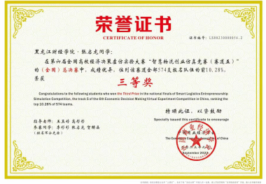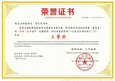 经过激烈竞争,经济学院物流管理教研室王玉婷、高彤彤老师带队指导的黑龙江财经学院代表队,在赛道“智慧物流创业仿真竞赛(赛道五)”的全国总决赛中获得团队三等奖。