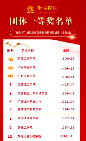 在本次竞赛中,黑龙江财经学院经济学院财务管理专业税务方向教师李春红、许左言带领的8名教师团队,精心指导69名财务管理专业学生组成的代表队,经过为期14天的激烈比拼,最终在全国众多高校中脱颖而出。根据前30名学生的综合成绩,团队以全国第8名的成绩荣获团体一等奖,展现了经济学院财务管理专业学子卓越的专业能力和团队协作精神。特别值得一提的是,本次参赛选手中,闫邱雪、陈文钦两位同学凭借出色的表现,分数位列全国前30名,荣获“全国个税师(个税普法大使)百强”的荣誉。