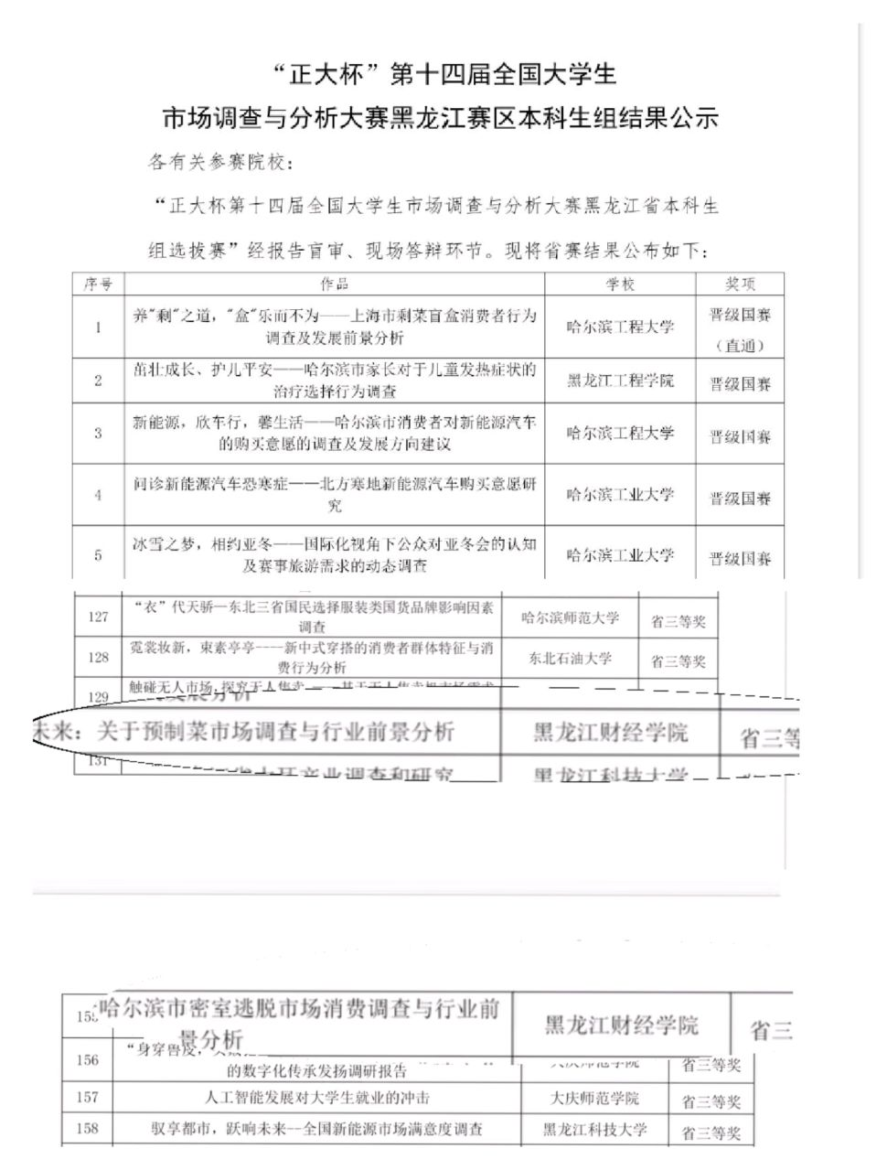 2024年4月28日,“正大杯”第十四届全国大学生市场调查与分析大赛黑龙江赛区本科生组成绩最终揭晓,来自不同院校的百余支队伍同台竞技。此大赛为我校首次参赛,经过校赛筛选,由13支队伍中选送4支队伍参加省赛。经过同学们不断地努力和指导教师的认真指导,最终我校在本次大赛中获省三等奖两项,分别来自会计学院的“不可思议”组和“你说的都对”组。