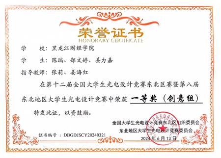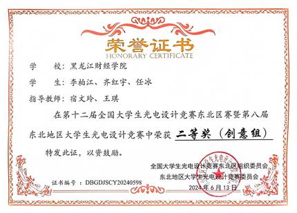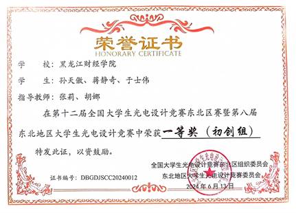 第十二届全国大学生光电设计竞赛东北区赛暨第八届东北地区大学生光电设计竞赛现场决赛于6月10日-13日在黑龙江省黑河市(黑河学院承办)成功举办,我校有2支队伍入围,并获得一等奖路演铜杯2项。电子信息工程专业陈瑞、郑文婷、姜力嘉的作品《智能移动测量小车》荣获创意组一等奖路演铜杯;计算机科学与技术专业孙天傲、于士伟、蒋静奇的作品《寻路机器人》荣获初创组一等奖路演铜杯。除此之外,电子信息工程专业李柏江、齐红宇、任冰的作品《智糖宝——非侵入光电式血糖检测仪》还获得东北区赛二等奖。希望我院学生在后续省赛中能再接再厉、取得更好成绩。