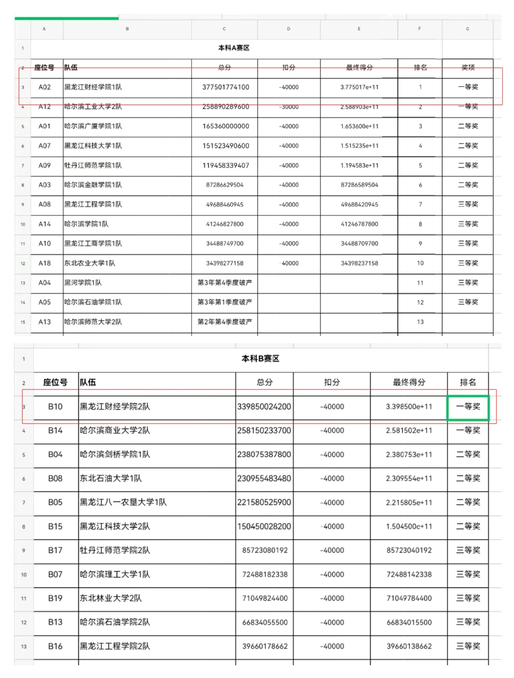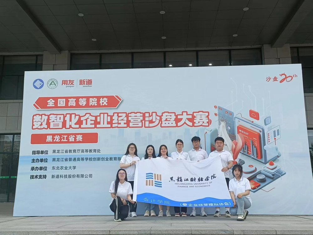 会计学院派出了两支参赛队伍经过一天线下激烈的角逐,最终一队成员:李进文、邹佳依、李乔喜、于昊鑫,二队成员:李龙、程微、邱亦舒、齐晨然。均以总分第一荣获2024年全国高等院校数智化企业经营沙盘大赛黑龙江省赛“一等奖”。