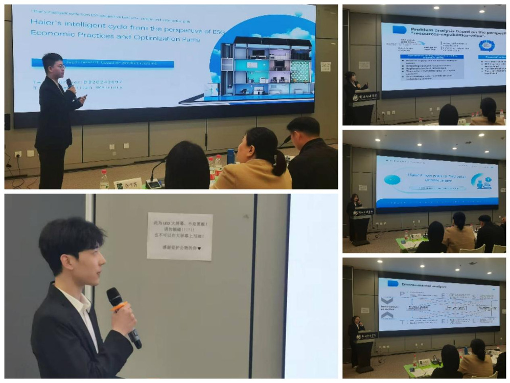 东北赛区决赛采用20分钟全英文PPT演讲汇报和英文答辩的形式,组委会邀请了大连海事大学综合交通管理会计研究院领导、大连民族大学国际商学院会计系主任、大连拜尔医药总监、天纳克汽车亚太区总监以及埃森哲信息技术大连有限公司财务主管作为评委。本次案例围绕海尔智家ESG展开,评委对黑龙江财经学院代表队的英文案例汇报及现场答辩给予了充分肯定,展现了我校卓越的专业素养与国际化水平。