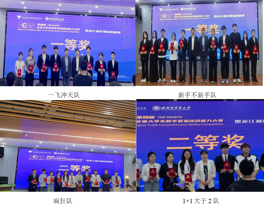 2025年6月21日,第四届全国大学生数字贸易综合能力大赛义乌小商品城AI+创新创业赛道黑龙江赛区现场选拔赛在哈尔滨商业大学落下帷幕。本届大赛由黑龙江省教育厅高等教育处为指导单位,黑龙江省普通高等学校创新创业指导委员会、全国大学生数字贸易综合能力大赛组织委员会主办,哈尔滨商业大学经济学院承办。根据2025年5月23日,由高校教师教学发展研究国家级虚拟教研室、中国国际贸易促进委员会商业行业委员会与浙大城市学院高等教育数智评价研究中心联合发布的第2轮普通高校大学生商科类竞赛指数榜单(本科,2025版)中,全国大学生数字贸易综合能力大赛成功入选普通高校大学生商科类竞赛指数榜单。