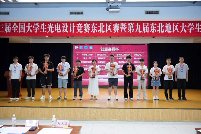 财经信息工程学院共有24支队伍参与竞赛,其中一支队伍晋级参加路演决赛,学生冯丹、倪嘉欣、安桐的作品《基于多模态光谱技术的无创哮喘实时监测系统创意设计》通过不断精进项目方案和改进实验,最终荣获创意组东北区赛一等奖路演铜杯。除此之外,财信学院在第十届省赛中有10支队伍获创意赛省二等奖的好成绩。我校也被授予第十三届全国大学生光电设计竞赛(东北赛区)“竞赛优秀组织奖”。
