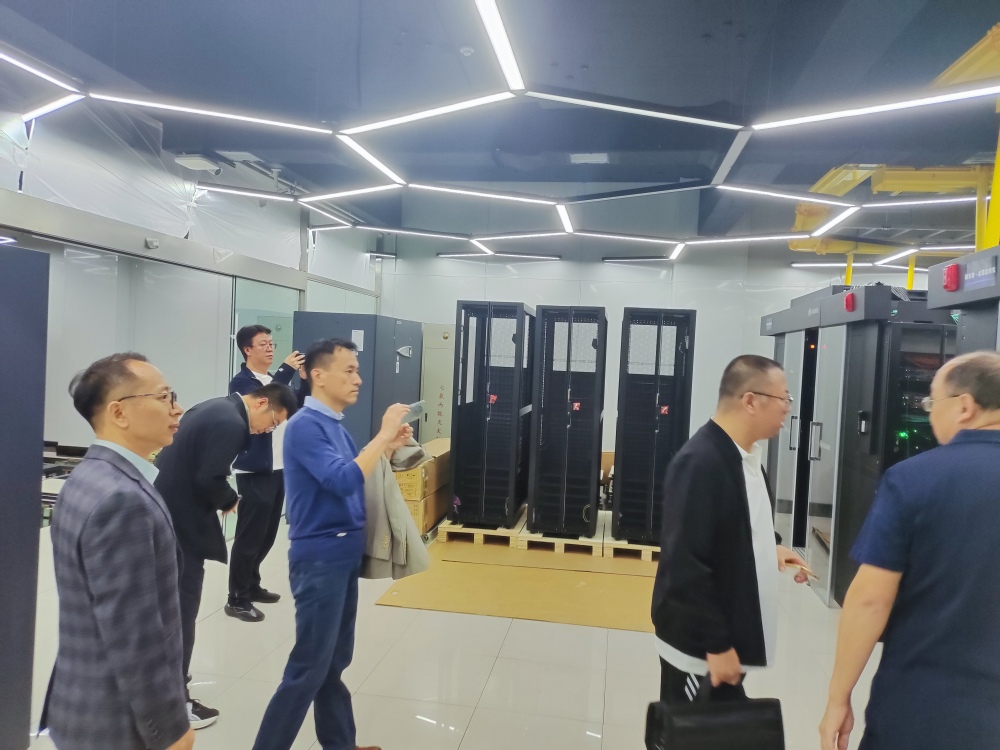 在中心机房,参观了服务器集群、网络核心设备、存储系统及其他配套设施。耿海涛处长从网络核心基础设施建设情况、云桌面系统、教学科研支撑、管理服务优化、安全防护体系等关键问题做了全面介绍。